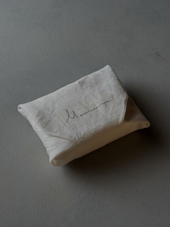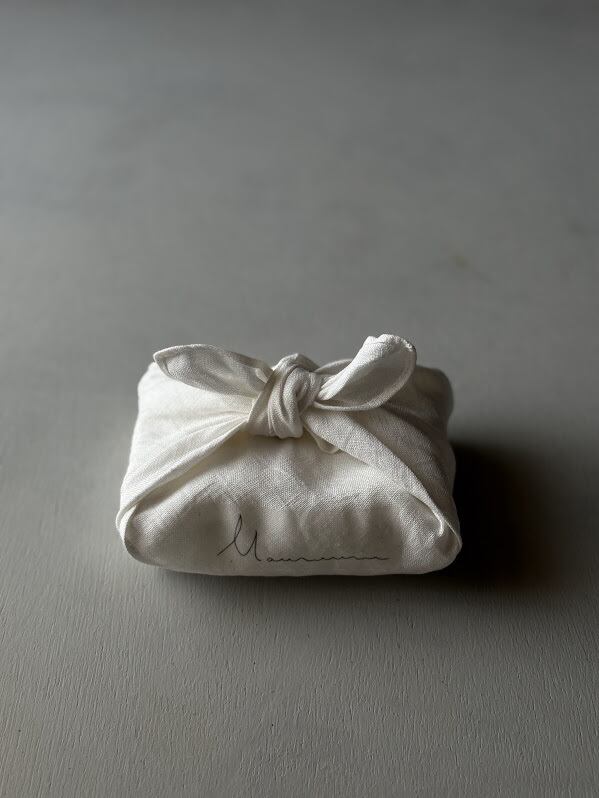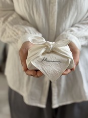 また贈る際の紙袋の他に、国産リネン100%のハンカチもご用意しました。化学薬品などを用いず丁寧な国内縫製なので、贈る包み布として役目を終えた後は、手や顔用のハンカチとしてリユースしていただければと思います。草木染も可能です。繰り返し洗うたびにお肌に馴染む柔らかな質感となります。